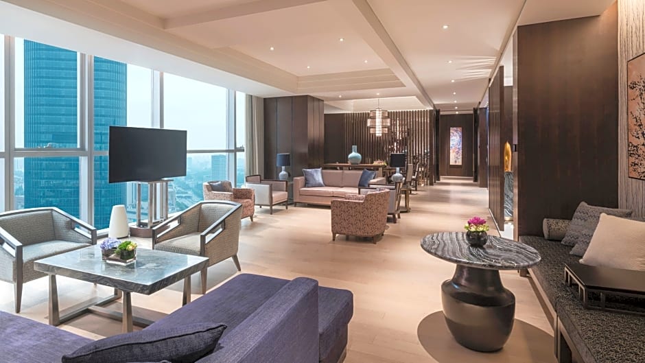 This suite features a seperate living room, dressing room and bedroom. There also comes an addtional bathroom. Access to the Club Lounge are included.